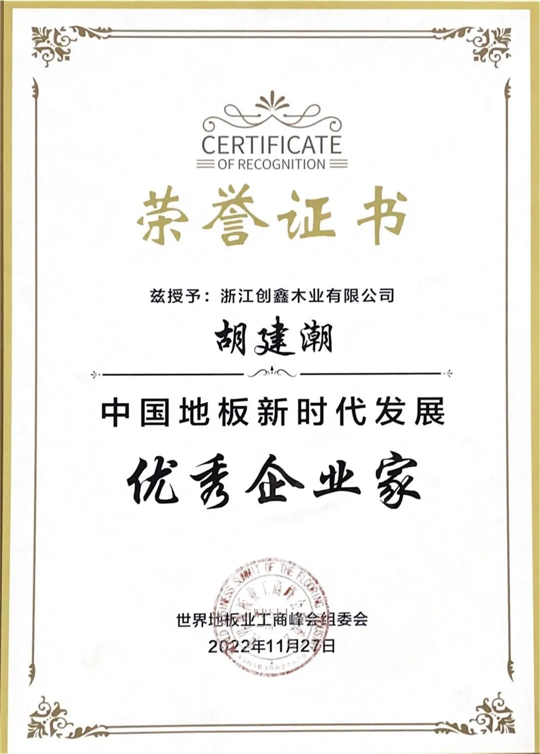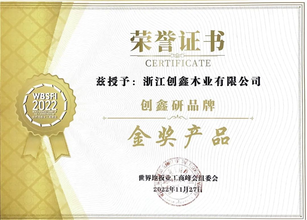 創(chuàng)鑫研地板始終注重技術創(chuàng)新和產品研發(fā)在與國內外著名木材研究機構開展交流合作的同時,不斷加大科研投入力度,這次在世界地板業(yè)工商峰會暨中國地板新時代發(fā)展大會上榮獲了金獎產品的榮譽。并且在大會上榮獲中國地板新時代發(fā)展優(yōu)秀企業(yè)家的榮譽。